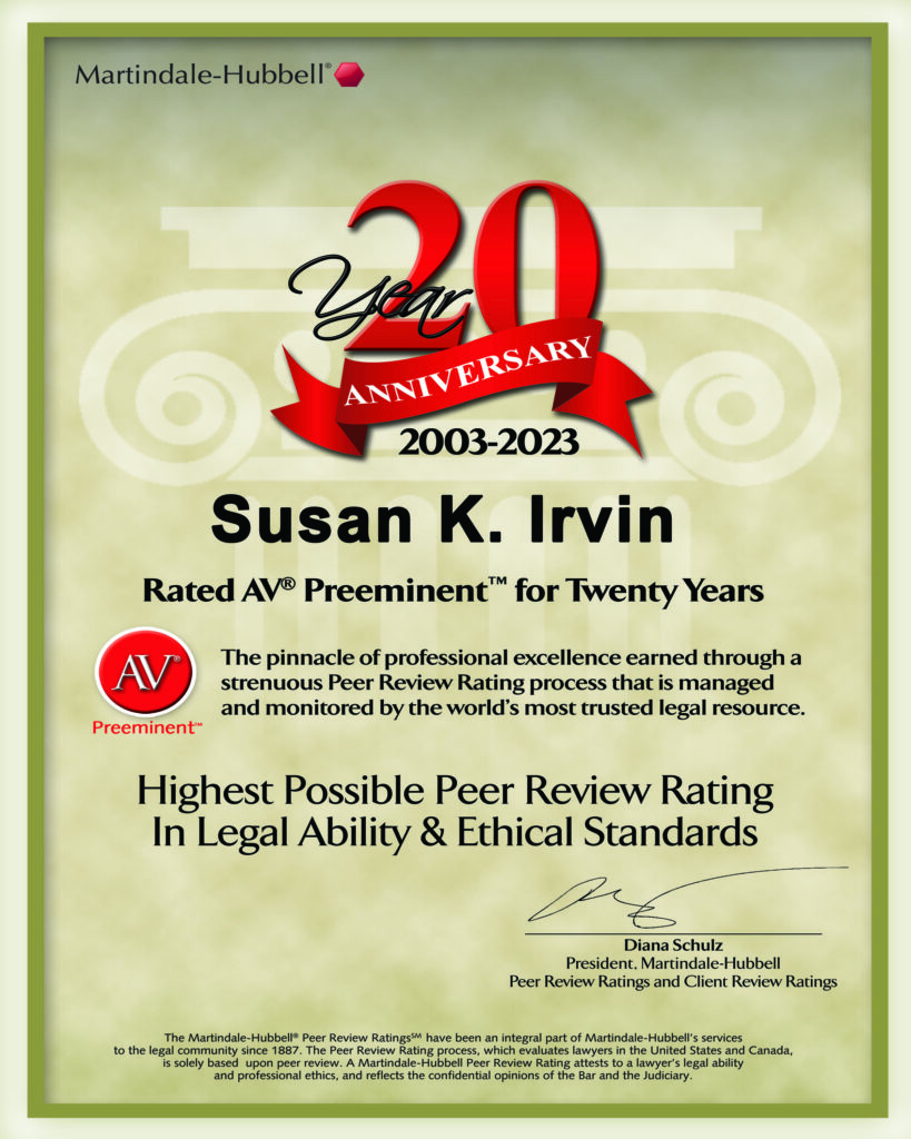 - AV Preeminent for 20 years (Martindale Hubbell), the highest possible Peer Review rating in Legal Ability and Ethical Standards